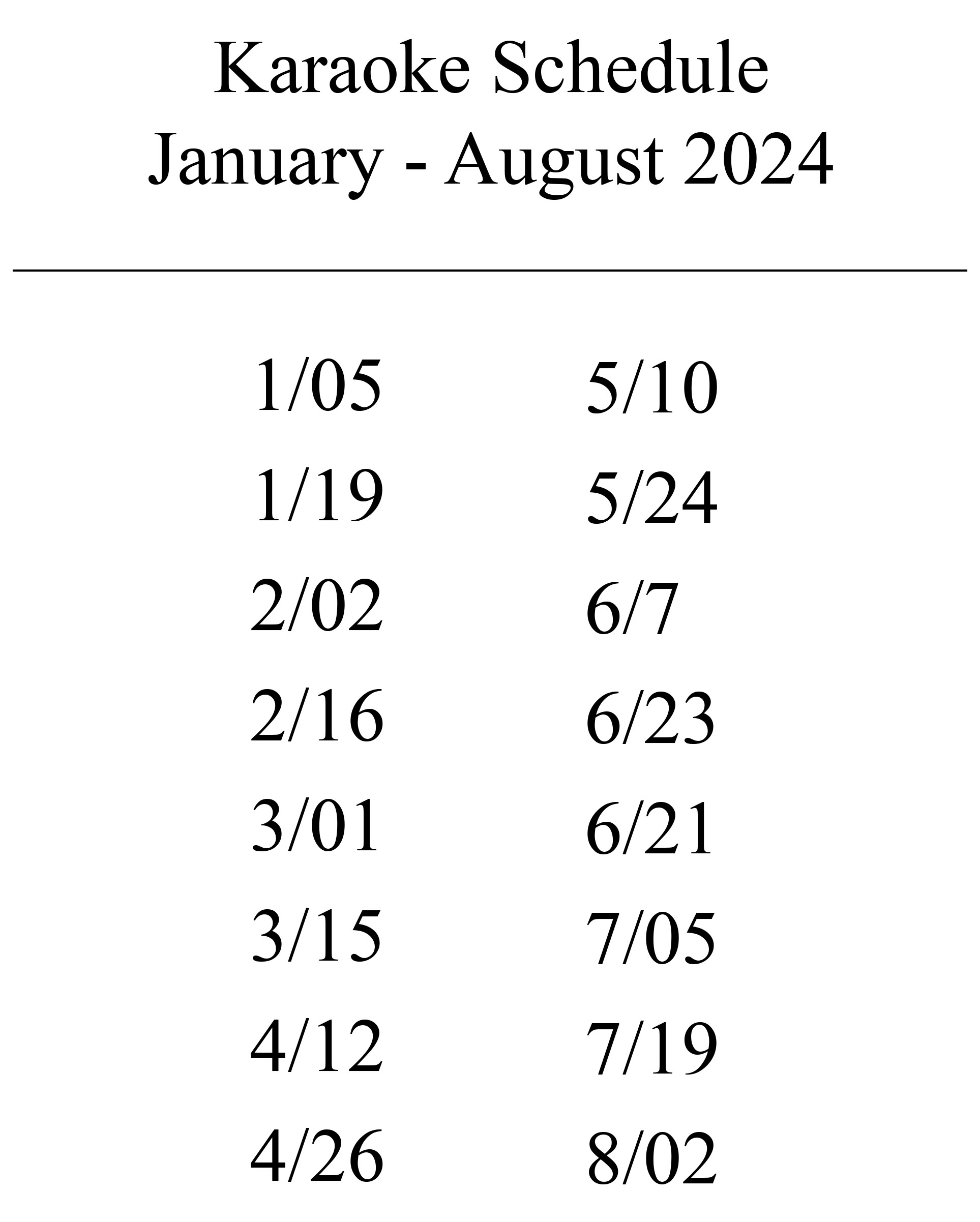 Friday, January 23rd - Karaoke with DJ Nick - starting at 7:00pm - 10:00pm
